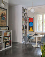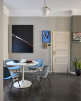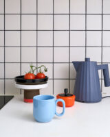 We have a deep interest in gastronomy, not only in our work but in our daily lives as well, which is reflected in our kitchen design. There, we placed tiles that allude to graphic design and paired them with colorful, playful Alessi tools.