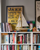 Every object in our space has a story, and we have an emotional connection to each one. For instance, our vinyl covers change regularly on the shelves, depending on which one resonates more with our moods at any given time.