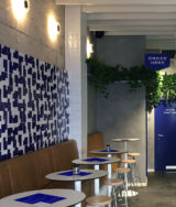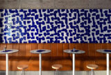 We designed the interiors of all three Blue Agori Greek Food Bars in collaboration with the owners, intentionally ensuring that graphic elements derived from this strong visual identity play a dominant role in the spaces. This approach results in interiors that are unmistakably unique and full of character, setting them apart from other venues with similar functions.
