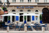 The vibrant blue color sharply distinguishes even the smallest shop from other fast-food restaurants in the area and stands out amidst the visual noise of the urban landscape.