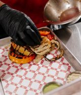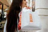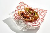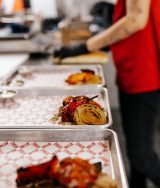 For dine-in customers, meals are served on metal trays, where the checkered tablecloth-inspired patterned wrapping works equally well. This design reinforces the brand's connection to tradition and home-style dining while adding a visually cohesive touch.